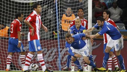Italia comenzó perdiendo ante Paraguay con un gol de Antolín Alcaraz, a los 38' del PT, pero un error del arquero Justo Villar posibilitó que Daniele De Rossi, a los 18’ del complemento, marque el empate para el último campeón del mundo bajo una intensa lluvia en Ciudad del Cabo.