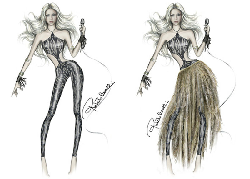 El boceto que se ha filtrado muestra una Shakira enfundada en un ceñidísimo mono de estampado de cebra. Además, la cantante también lucirá una falda inspirada en la cultura africana, diseñada exclusivamente para que su característico movimiento de caderas luzca aún más sexy si cabe.
